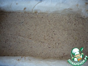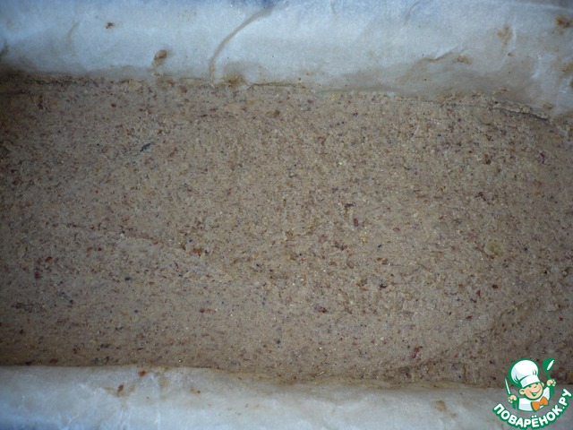 Берем прямоугольную форму для выпечки (размер 25x11). Форму застелить пекарской бумагой и переложить в неё приготовленный чечевично - грибной фарш, хорошо разровнять.