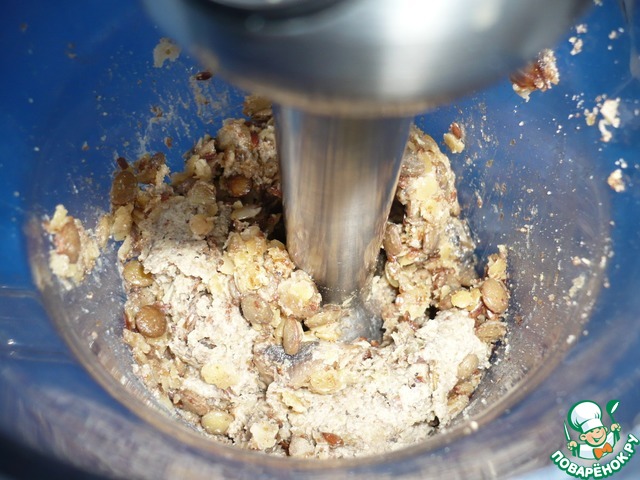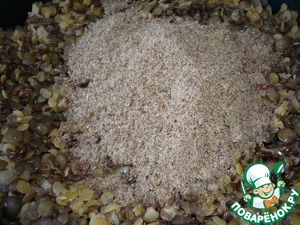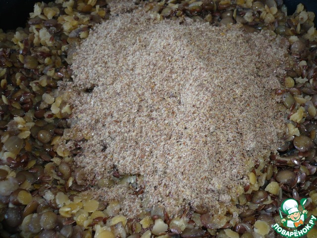 Измельчить семена льна (я измельчила кофемолкой), добавить к грибам и чечевице и хорошо перемешать. -