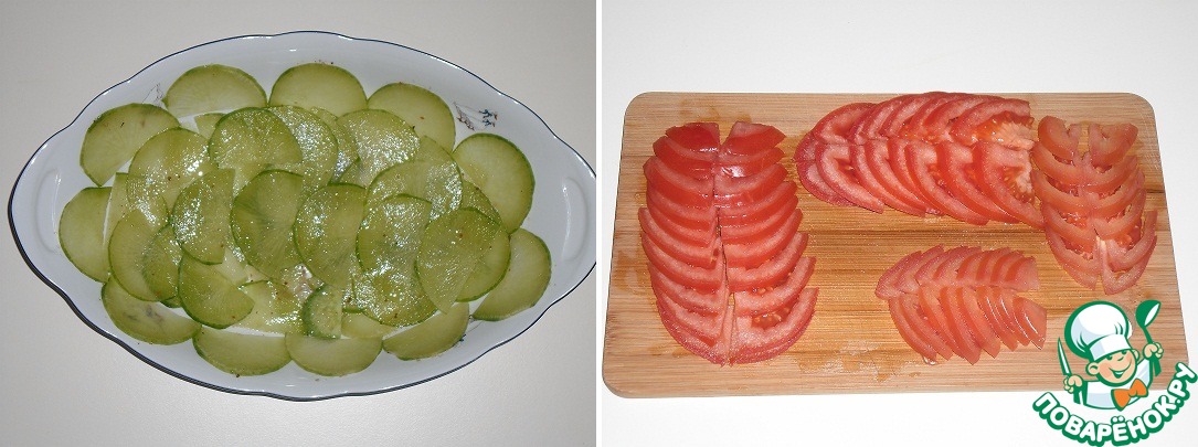 Теперь пришла очередь остальных овощей. Разрезать помидоры на четыре части и на ломтики.