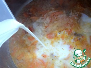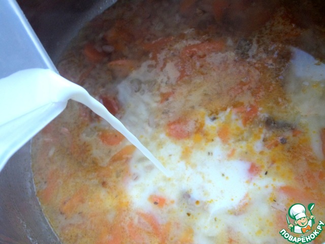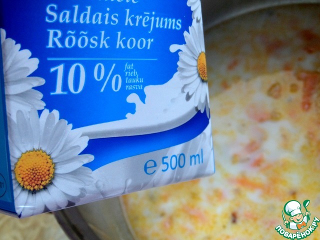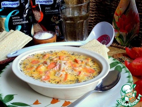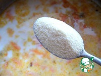 Когда суп прогреется, всыпать ложку-полторы семолины от ТМ"Мистраль"для загустения. Ей достаточно провариться пару минут. |
