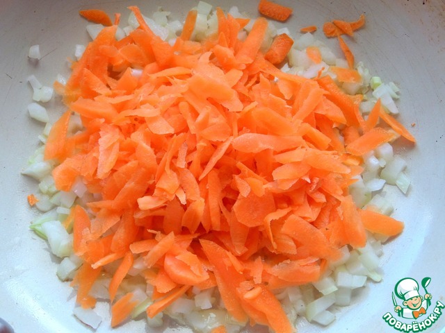 Морковку тоже. Тут у меня тёртая и немного кружочков для красоты в тарелочке. |