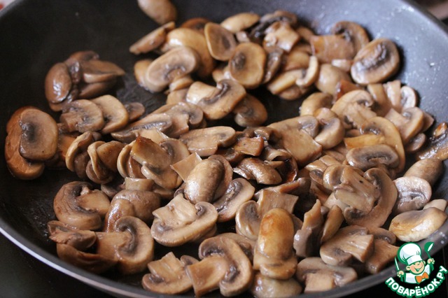 Грибы нарезать и обжарить до готовности на разогретом растительном масле (2 ст. л.).