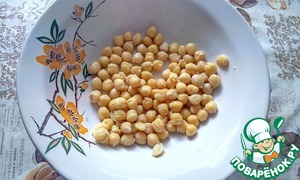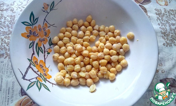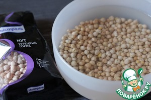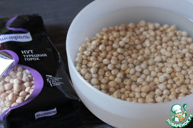 Нут замочить на несколько часов, затем воду слить, залить нут свежей водой и отварить до мягкости.