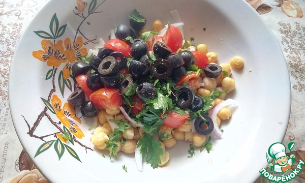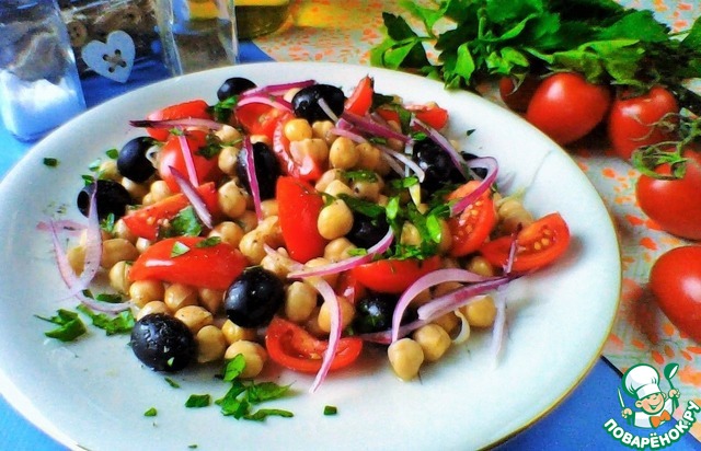 Ингредиенты для «Салат из нута, черри и маслин»: