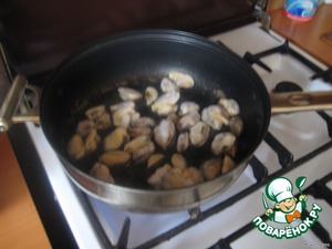 Морепродукты кладем на сковороду с растительным маслом и тушим в течении 10 минут.