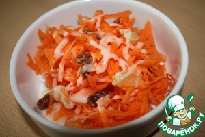 Смешать изюм, лимон и морковь. Для пикантности можно чуток добавить соли.