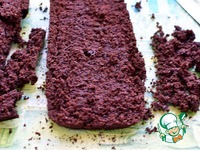 Корж вынуть и остудить на решетке, затем разрезать пополам. Низ оставить целиком, а верх раскрошить в миску. |