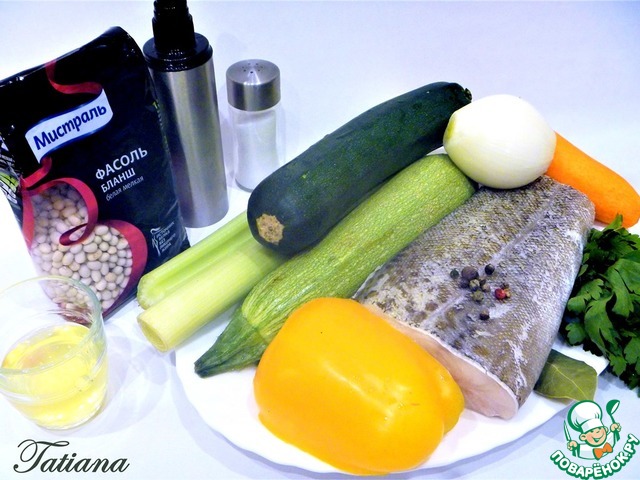 Ингредиенты для «Рыбный суп с фрикадельками и фасолью»: