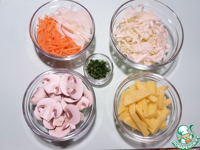 Ингредиенты для «Щи с чечевицей и шампиньонами»: