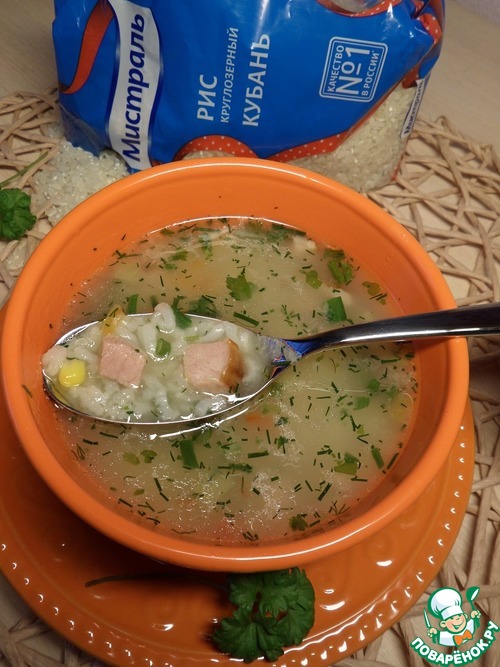 Бульон получается легкий, с приятным вкусом копченостей, а овощи и рис добавляют густоту.