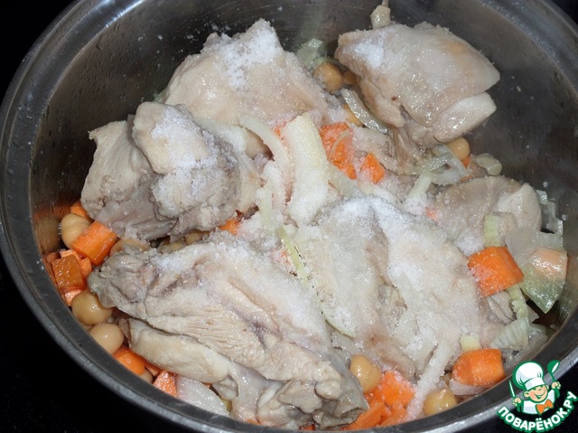 Подготавливаем продукты. Заранее отвариваем нут, что значительно сокращает время приготовления супа.