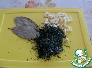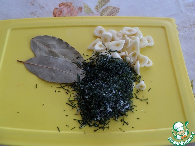 Нарезаем чеснок и укроп. Промываем лавровый лист.
