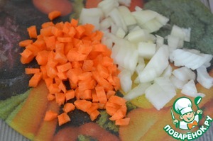 Овощи почистить и вымыть. Лук и морковь измельчить