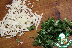Для подачи супа натереть сыр на крупной терке и нарезать кинзу.