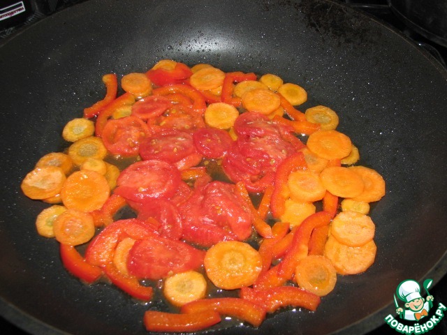Обжарить овощи в небольшом количестве растительного масла, добавив специи.