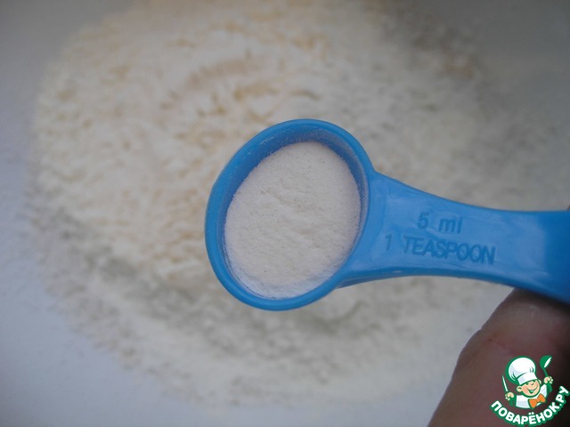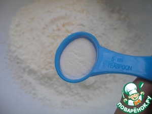 • Добавляю сюда же неполную 1 ч. л. разрыхлителя, 0,5 ч. л. соли, 1 ст. л. ванильного сахара и полстакана сахара.