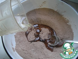 • К полученной сухой массе наливаю 130 мл растительного масла. Опять перемешать.