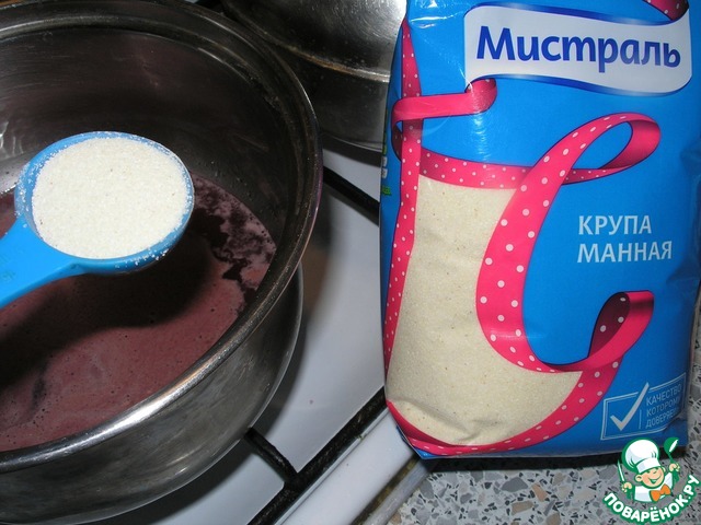 • А вот теперь мне понадобится манная крупа ТМ "Мистраль", которая поможет загустеть крему. Добавляю постепенно 2 ст. л., постоянно помешиваю, чтобы не было комочков. А теперь обязательно добавляю немного лимонной цедры. Проварить на маленьком огне около 5 минут. Дать остыть, после чего крем можно немного взбить венчиком.