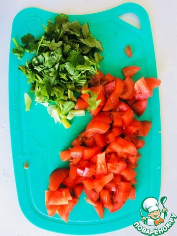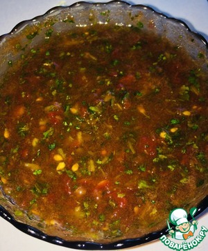 Добавляем к помидорам с кинзой сок лайма, соевый соус и мёд.