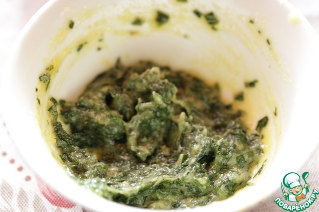 Растереть 70 г сливочного масла с половиной тархуна, добавить соль и перец.