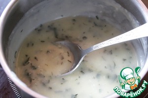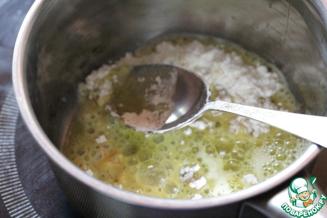Приготовить соус: растопить 20 г сливочного масла, добавить муку и обжарить ее до золотистого цвета.