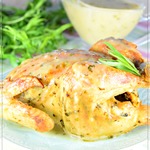 Блюдо, безусловно, на любителя. Во-первых, не все любят тархун, во-вторых, не все понимают его с мясом/птицей/рыбой. Я вот как раз любитель, так что мне результат очень понравился. Нежная запечённая птица под ароматным соусом - чудесно! В оригинале, кстати, используется цесарка, так что если она вам доступна, готовьте с ней.