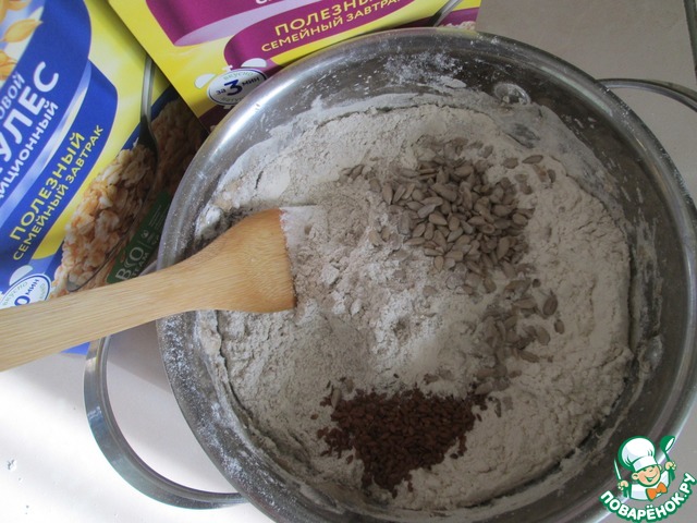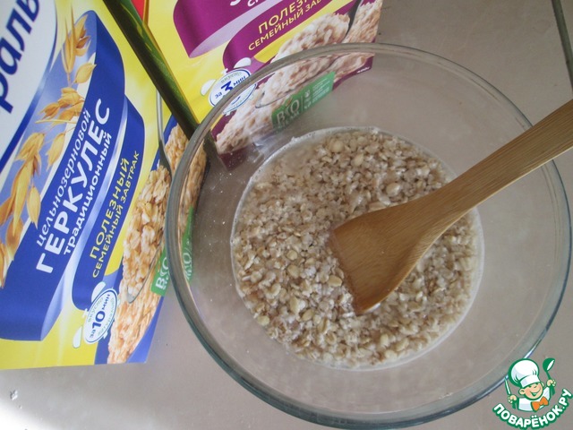 Геркулес, смесь хлопьев 5 злаков, дрожжи залить теплой водой.