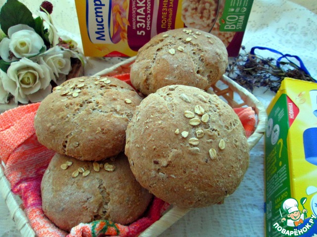 Рецепт «Пышные булочки из цельнозернового геркулеса»: