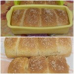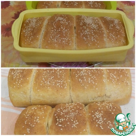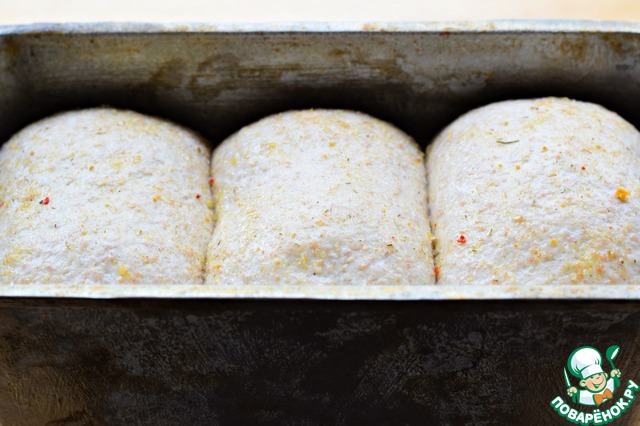 Положить заготовки швом вниз в форму, смазанную маслом (21*10*11 см), прикрыть полотенцем или салфеткой и поставить в теплое место на 25-30 минут.