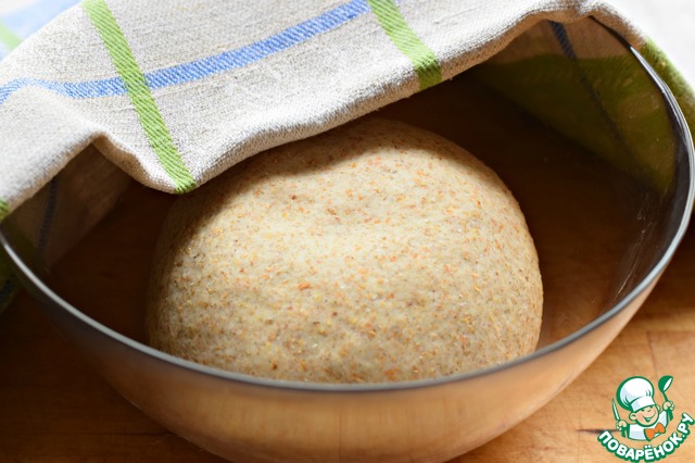 Положить тесто в чашу, смазанную маслом, затянуть пищевой пленкой и поставить в теплое место для подхода на 40-45 минут.