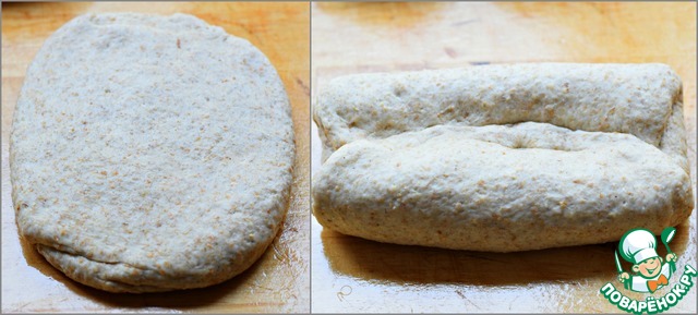 Каждую часть раскатать в небольшую лепешку. Два края лепешки подвернуть к центру и придавить ребром ладони. -
