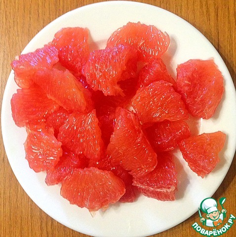 Грейпфрут помыть, почистить, освободить от плёнок и разломить на кусочки.