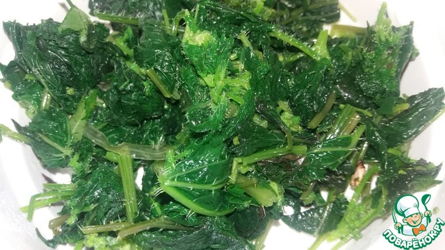 Крапиву замочить в кипятке на несколько минут и нарезать. |