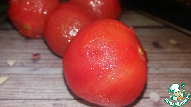 Томатный соус можно использовать готовый в количестве 150 мл. Я решила приготовить домашний.. Начнем с бланширования помидора ( у меня помидорки черри) и удаления кожицы. |
