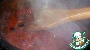 Проварить до мягкости овощей. Проверьте на соль и перец. При высокой кислотности добавьте еще немного сиропа или сахар. |