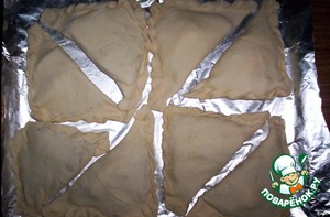 - Выложить на противень, выпекать в разогретой до 220 t духовке 20 минут.