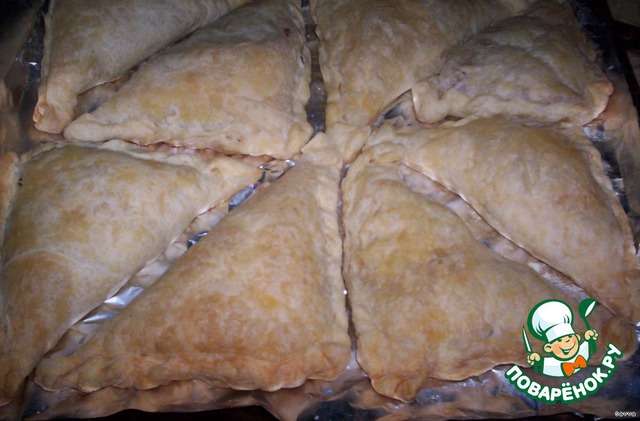 Быстрый рецепт приготовления слоeных пирожков с рыбой и капустой.