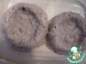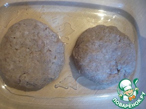 Из фарша формируем лепешки. Отправляем их на смазанную форму.