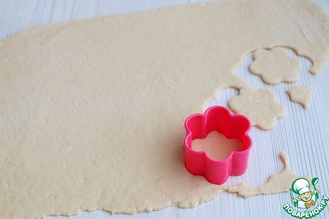 Тесто раскатать в пласт толщиной 1-1,2 см. Тоньше раскатывать не следует во избежание пересушки печенья во время выпекания! Формочками для печения вырезать различные фигурки.
