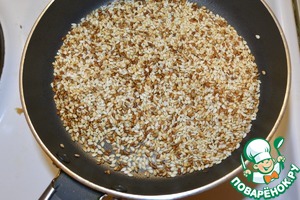 Пока картошка тушится, насыпать кунжут на раскаленную сковородку и