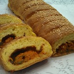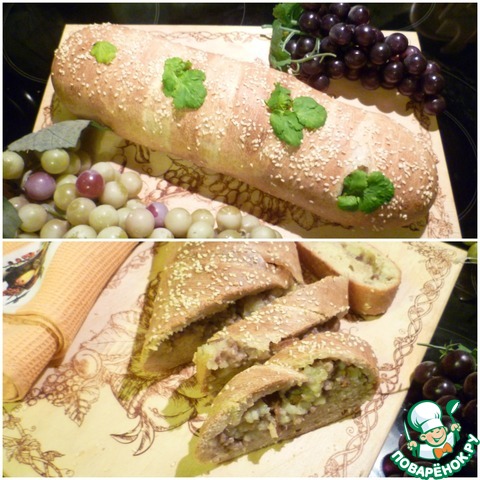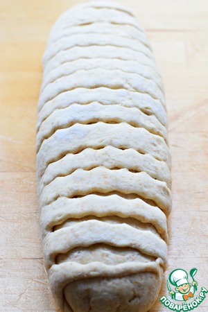 Аккуратно свернуть тесто с начинкой рулетом. Не плотно!