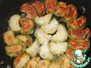 Готовые кабачки панируем мукой, обжариваем в растительном масле с двух сторон.