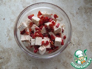 Соединить перец, лук, вяленые томаты, сбрызнуть лимонным соком, добавить соль, тофу, перемешать.