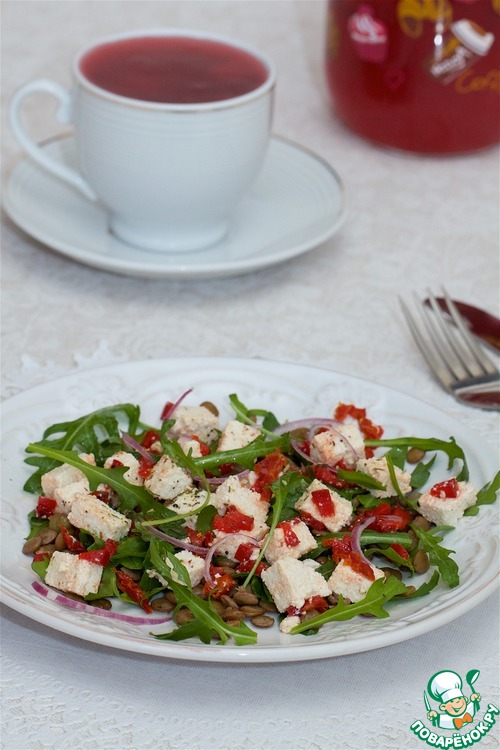 Рецепт «Салат с чечевицей, рукколой и тофу»: