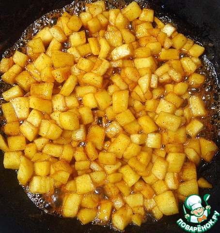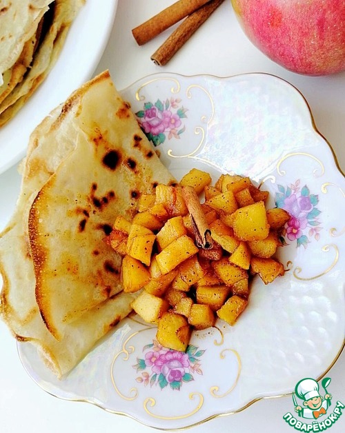 Рецепт «Постные бездрожжевые блинчики с карамельным яблоком»: