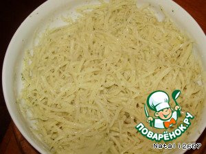 Картофель почистить и натереть на средней терке. Добавить яйцо, специи, муку.