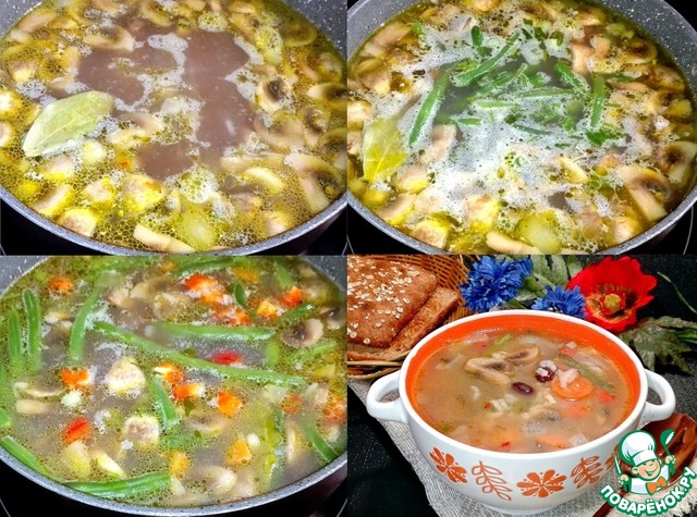 В кастрюлю с супом добавила стручковую фасоль,