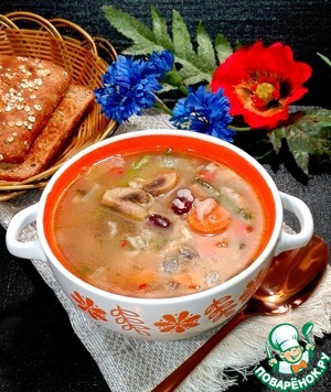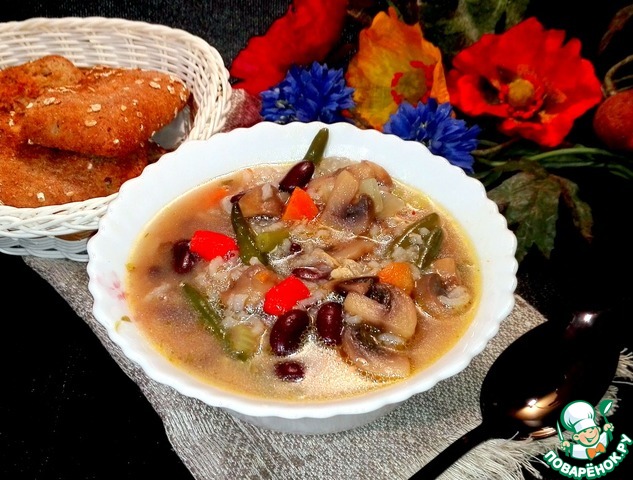 Рецепт «Постный рисовый суп с шампиньонами»: