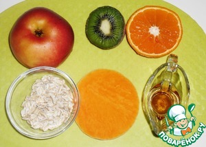 Яблоко и тыкву натереть на тёрке "крупная чешуйка", четвертушку киви нарезать кубиком, из половины мандарина выжать сок, его надо 1 ст.