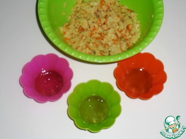 Силиконовые формочки слегка смазать растительным маслом и разложить в них получившуюся кашу.